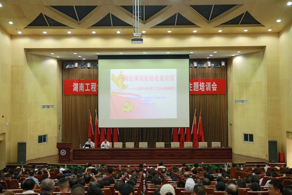 8月29日上午,学校在一报告厅举行主题为“将纪律规矩挺在最前面——十九届中央纪委三次全会精神解读”的辅导报告,这也是此次干部培训校内专题报告会的第七场。报告会邀请湖南省纪委省监委驻省教育厅纪检监察组副组长刘爱军担任主讲。党委书记陈岳堂主持报告会。