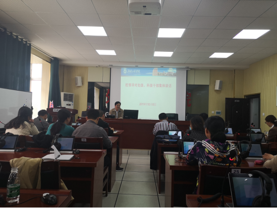 上完党课后,俞贵邦书记又对所分管和联系部门的科级以上干部进行了集体谈话,要求广大干部要旗帜鲜明地讲政治,要毫不犹豫地搞好团结,要明明白白地做人,守好纪律和规矩,要不断学习提升能力,理论学习有收获,干事创业有成效。